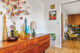 “We have 4,000 square feet of mid century yumminess,” Marcia says. “My husband has claimed the lower level family room with the bar and pool table for his area. It has a large sliding glass door to the backyard with a patio. My favorite spaces are the office with the cool boomerang desk and the large main patio area with large sliding glass door access from the family room and living room areas and the original mid-century outdoor furniture we purchased from the estate. It has the original gas torches and barbeque, all still working. I also love the living room and entryway. I love the entire house.”