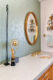 In the bathrooms, the couple kept the cabinetry, counters and sinks, and upgraded the fixtures. Carpeting was removed in most of the home. The walls were repainted. They repurposed original mirrors and light fixtures, finding new uses in different parts of the home. The popcorn ceilings were scraped in most of the home, with one notable exception.
