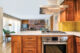 The kitchen maintained its original footprint and many original cabinets. Jessica took out the upper cabinets that once divided the kitchen from the family room to lighten the space and make room for a new gas stove and cooktop. New cabinets accommodate new appliances, custom-built to match the look of the originals.