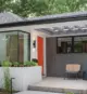 The scope of this project evolved over time, turning into a near gut remodel of interiors and plenty of landscaping. Four additions were added to the 1950 Kansas home to unify it overall and solve the programmatic desires, Chris says. “One small entry space for the front porch, a small bump behind the garage to both fix the roofline and create the mud room 1/2 bath, the screened porch and master suite family room,” he explains. The master suite family room and screened porch were the two larger additions in footprint, setting up the courtyard condition for the hot tub. “We added approximately 1,050 square feet to the house, rendering the final house about 2,450 square feet. The small addition to create the new entry and transform the front of the house I think is my favorite,” he says. The entire interior of the home was reworked to improve circulation between the existing areas and the new lower level walkout family room.