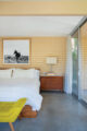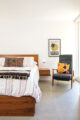 His partner, Alisse Ellis, has an eye for finding the right pieces. Though wood floors usually warm up a space, they couldn’t do that with the concrete floors, so Alisse and Brent focused on blending contemporary pieces with some of her favorite vintage items, like a Knoll bedroom set they bought at an auction in Indiana. “This combo offers a timeless feel, whereas lime-green and neon-orange décor feels kitschy,” he says. “She and I wanted to feel like we’re home and not on vacation.”