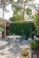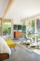 By the time Brent toured the property in 2012, however, the famed tennis courts that Marilyn Monroe and others used were gone and the hotel had long ago been converted into condos. But Brent was eager to see all that remained of the property. Luck would have it that one of the Racquet Club Cottages West condos was for sale, and Brent darted off tour to take a peek. “I had never seen anything like it before,” he says. Inside, he spotted the condo’s beautiful, exposed beams and floor-to-ceiling glass doors. Outside were the massive outdoor overhangs—all Cody trademarks. Brent knew he had to make an offer. Fast forward to November 2013, and he and his family were moving into their new home.
