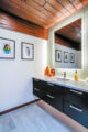 Over the next three years and in two separate phases, Dan and Brandie restored the historic home to its former self, while adapting it for their lives. “We were both very committed to rescuing it and modernizing it without losing the original magic of the design,” Dan says. Originally, the bedrooms were tiny, and the main bedroom was separated from the living room with only an accordion door. Another problem was that the living room didn’t have a logical place for a television. “We literally removed the entire core of the house (roof, ceiling, floor and beams) and rebuilt. Now, the center of the home is the most robust!” Brandie says. “Losing the bedrooms initially was a tough decision, but we weighed that against how important family movie night is to us.”