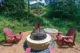 After thinning overgrown and invasive weeds at the bottom of the steps, wildflowers now line the exterior of the clearing. “The client’s home is on a bluff overlooking a real creek and originally had reclaimed railroad ties and gravel steps leading down the hillside,” James explains. Steps were rotting with time and the path needed some safety upgrades. Native limestone outcropping steps were designed to replace the railroad ties for a more natural look, with soft lighting along the path. The fire pit itself is constructed of radial cut limestone with a spark screen. “We went with circles for the geometry, as angles would have felt out of place in the clearing,” James says.