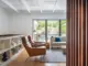 The design team worked closely with the homeowners to find colors and materials that were both contemporary and period correct, spending 10 months in design prior to construction. “The original house was a plain-Jane 1950s ranch that had some nice finish details, such as the beamed living room and kitchen with exposed tongue-and-groove ceiling. We wanted to take the original massing and attractive details and expand these to make the house feel more like a true mid-century,” Chris explains.