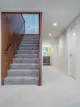 Scaling up the home to accommodate the larger family size and guest counts required additional living spaces and smoother access throughout these spaces. “It was critical to the design team to maintain the overall scale and aesthetic of the original house while adding the client’s desired program elements,” Chris says. The new stair to the lower-level family room was added in the primary living area of the house, connecting it to these spaces as a public space. The kitchen was fully reworked as a more functional space, open to the living and dining areas through a cased-opening louvered wall.
