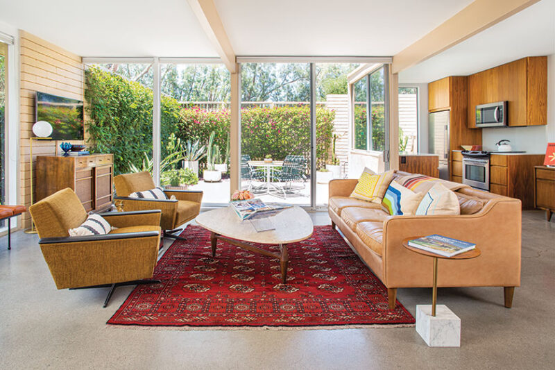 This mix of old and new created a lived-in look, unlike the typical mid mod fashions many employ in Palm Springs. “The most popular thing to do is to bring in the brightest colors you can find, like yellow rugs and bright blue sofas. I don’t think you have to work that hard to create a warm space with MCM design,” Brent says.