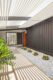 This MCM exterior and door extends the lines of the house beautifully, allowing sunlight to angle through parallel slats. The play of light and shade is a win-win to take some of the edge off the heat and to allow the barrel cacti and palms to get the light they need. And, of course, there’s the color contrast with the black siding, white trim and jazzy orange door.