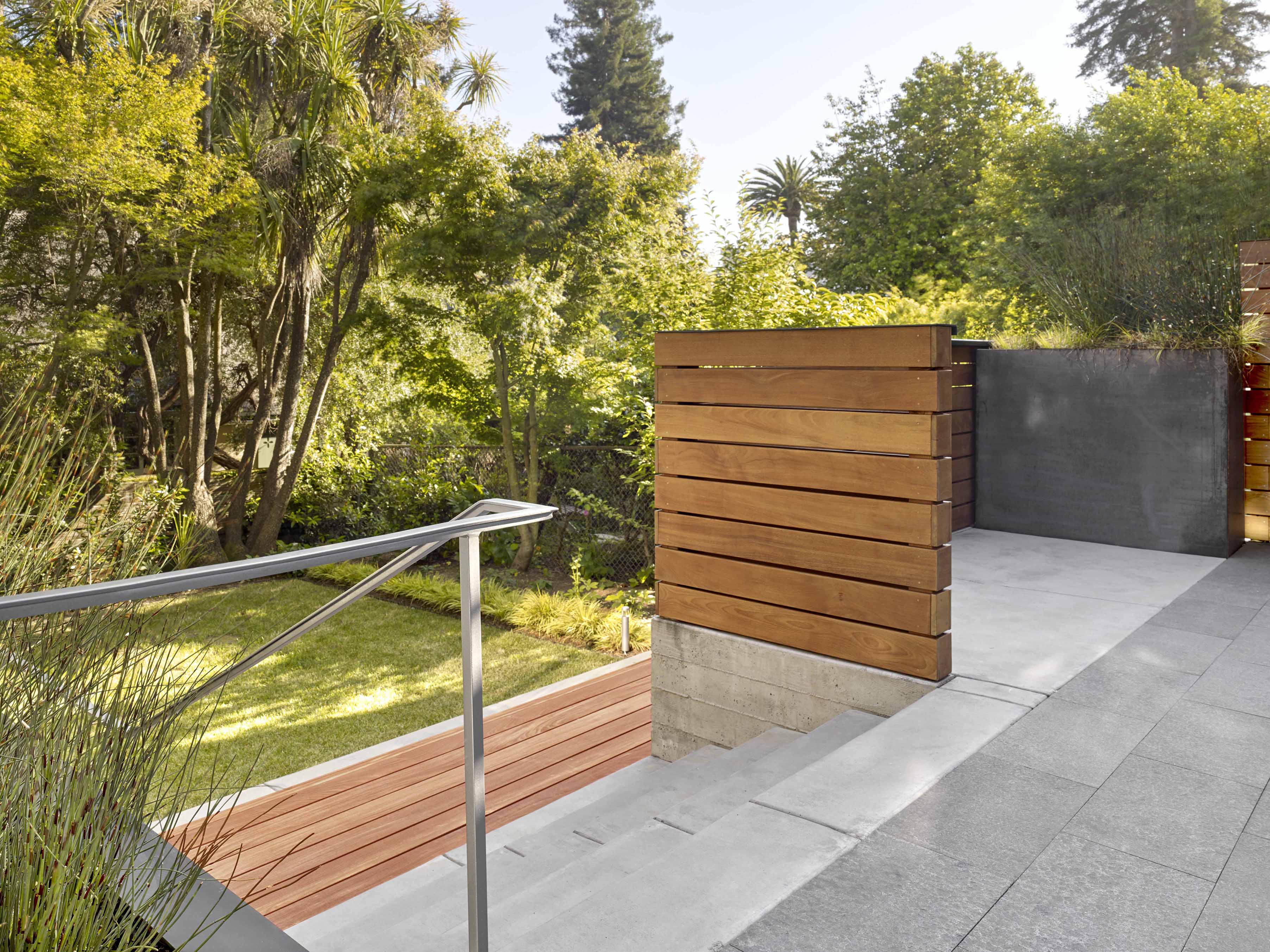 The next challenge in the project was to design a usable, yet beautiful yard. Flush sliders add to the living room’s Mid Century Modern style (think easy access to the bar from the patio). Huge Blomberg windows dissolve the boundary from the living room to the patio whether they are opened or closed. The landscape contractor at Envision Landscape Studio chose varying materials and textures for the yard. Basalt paving in the upper space transitions to wood and concrete steps. The steps butt up against large wood planks, providing comfy spectator seating to relax and watch the kids play on the lawn.