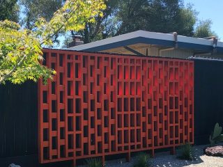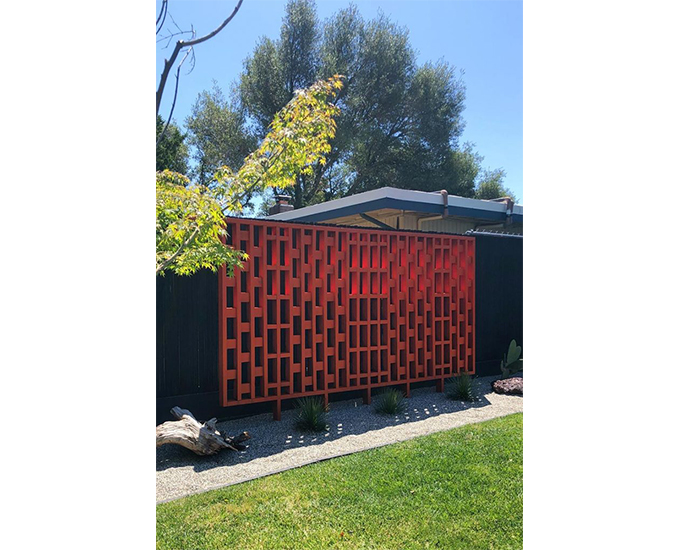 This sculptural screen took my breath away! I love the way the bold orange hue contrasts against the deep charcoal gray fence. I’m calling it: decorative wood screens in the backyard are this summer’s hottest must-have. Impressively, this screen is a DIY project that Robert completed only weeks before the event.