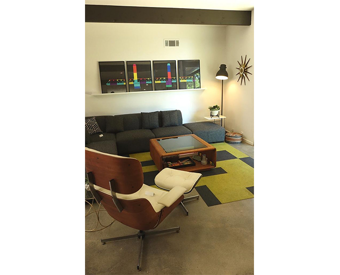 The home is filled with color, kitsch, music, patterns, and all the mod staples that could be on any enthusiast’s checklist.