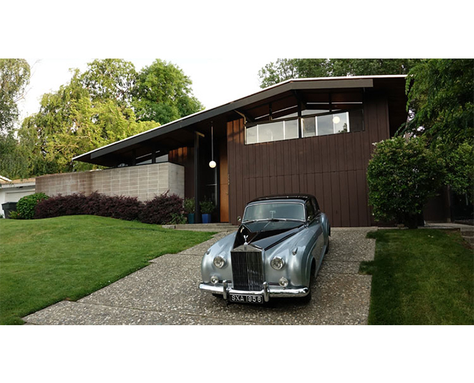 The front elevation is already dramatic, playful and mysterious, but I think this vintage Rolls Royce adds to the curb appeal.