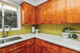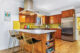 The kitchen maintained its original footprint and many original cabinets. Jessica took out the upper cabinets that once divided the kitchen from the family room to lighten the space and make room for a new gas stove and cooktop. New cabinets accommodate new appliances, custom-built to match the look of the originals.