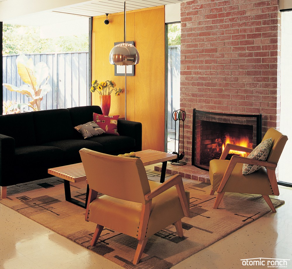 In addition to rotted structural members, 90 percent of the grooved Eichler siding needed replacing and, while the walls were open, the couple opted to insulate and ground the electrical system. Inside, some of the original mahogany paneling had faded or was beyond repair; Borsellino used a combination of Watco Golden Oak and Fruitwood stains with some orange universal colorant mixed in to match new pieces to the existing. In the kitchen, they painted the cabinets black and found they liked the room just fine.