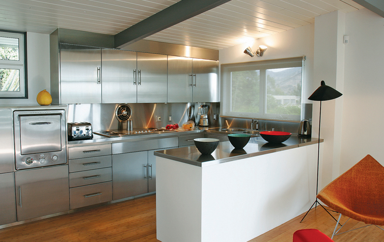 Jim’s thrall with modern architecture stems from his love of ’50s rockabilly music, which led to the clothing of the era, then progressed into modern furniture. “We got to meet others in this business, some of whom own influential modern houses,” he says. “One owns the Oscar Niemeyer house in Santa Monica, the only one in America. Others own Neutra houses, another the Pierre Koenig Case Study house on Wonderland Park [the Bailey House, CS #21, which sold at a Wright auction in December 2006 for $2.8 million]. I love that house for its wonderful architecture but I love our views more.”