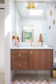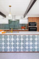 Many of the issues in this epic Eichler renovation were structural. “We started with needing to replace three-quarters of the framing due to significant structural termite damage,” Lori says. “We upgraded the post-and-beam structure with seismic hold-downs and concealed fasteners to meet the current codes. The exterior of the residence was meticulously restored to its authentic beauty, highlighting the iconic cantilevered roof, a strikingly colored door, clerestory windows and the clean, distinctive lines that define Eichler homes.”