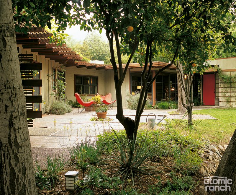The house, which sits in a wooded glen just barely outside Angeles Forest boundaries in Altadena, Calif., has evolved from a unreinforced masonry shed to a long, low board-and-batten rustic ranch with a modernist addendum. “It’s like European castles that start out Medieval, then have Baroque additions and become more and more contemporary,” Irmi says. “Now I wholeheartedly agree it was the better choice.”