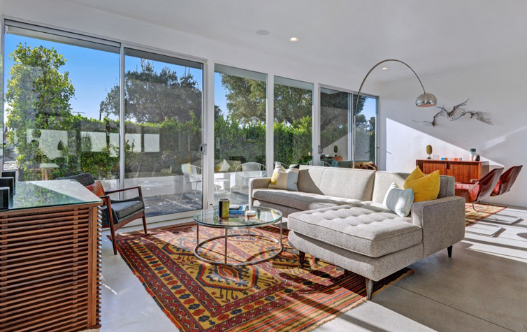 Chris Pardo (no relation to this post’s author) specializes in urban environments and iconic buildings. When he was placed in charge of perfecting the look of an L.A.-based Wexler steel house, Chris and his firm, Chris Pardo Design: Elemental Architecture, worked closely with the homeowners to improve the entryway (part 1). Faced with clean lines and large, spanning spaces, the home proved a unique challenge, taking about a year to gut and renovate the interior. But for now, it was on to the living room remodel.