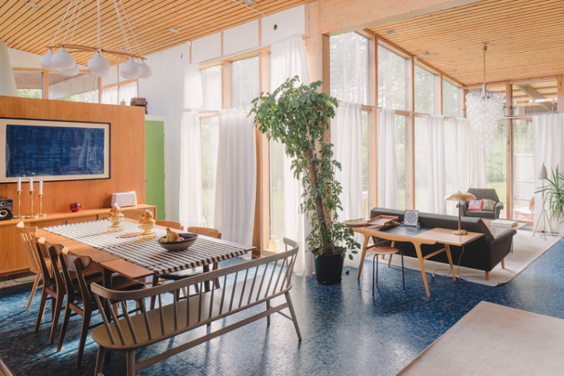 Designed by Greta Magnusson Grossman, this architectural marvel combines both Scandanavian and Californian MCM influences to create a space that is all too enticing. Composed of an open floor plan, glass walls, wooden ceilings, and mosaic tile floors, this designer focused on bringing light into the home, fashioning what is now known as the Swedish “Villa Sundin”. Read our take on this 1959 mid-century home here!