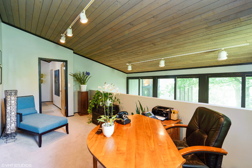 Originally designed with 3 bedrooms, 2½ baths and a detached 2-car garage, the house has been expanded twice in its 51-year history and now features an extra bedroom and bathroom. The first addition added a family room with darkroom (now a dry bar) on the main level, an office with closets upstairs, a mudroom and a second stairway as well as attaching the garage to the rest of the home.