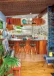 “When we remodeled, we really just knocked that wall out and added the peninsula,” Mary explains, noting that the new design was more conducive to entertaining. In addition to removing the original appliances, the couple contracted local remodeling company Fivedot to replace the original cabinets with custom-built Kerf cabinetry that was in keeping with the style of the home and captured their fun sense of color and detail.