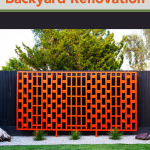 The decorative screen was constructed from 2x4s, and the overall approach looked to be pretty straightforward. Glen and I designed and constructed a 12-foot configuration from pressure-treated redwood. The staggered design and bold orange color add visual interest and contrast to the extended black backdrop. A more in-depth look at the screen-building process can be seen on the blog.