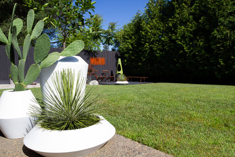 Blending the minimalist geometry of Modernist design with the easy-going atmosphere required for comfort is the creative challenge of MCM homeowners everywhere. In his Mid Century Modern backyard, Robert Maurer makes it look simple.