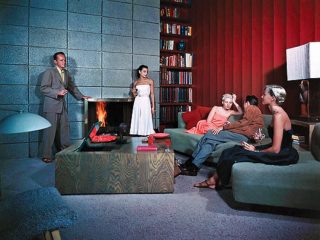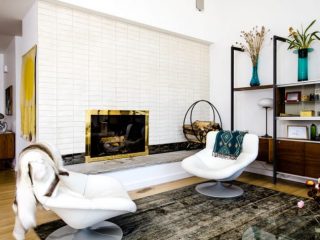 A blast to the past! Welcome to Richard Spencer and Josephine Caruso’s Mid Century Modern home, featuring a modern fireplace that he designed himself. The classic rectangle shape coupled with a stainless steel frame is a crisp way to bring an industrial sharpness to your home (all while keeping cozy during those chilly nights). Learn about this fireplace and tips on researching MCM homes here!