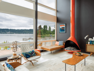 Sally Julien, owner of this glass box lake house, focused on incorporating both vintage and modern treasures into her spaces. And with this original Wendell Lovett fireplace, she keeps her extraordinary 1963 home authentically sleek and enticing! Click here to learn about this Mid Century home and how to incorporate bold designs into your space!