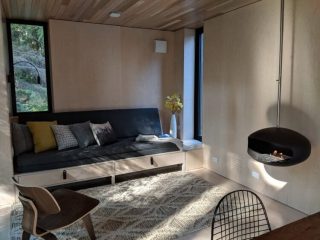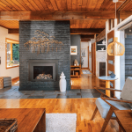 This standalone brick fireplace brings a subtle and welcoming charm to this 1958 Seattle home built by architect John Burrows. The MCM fireplace even has a hibachi grill! Its gray exterior means it complements the exposed wood throughout and gives the space a grown-up feel. Learn more about this “Zen Mod” home here!