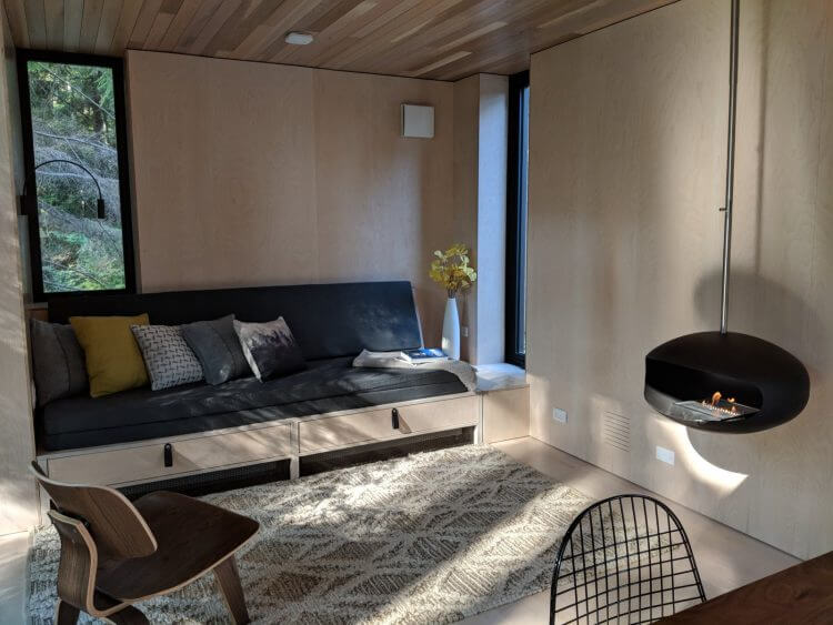 Minimalist is the new magnificent! This oval-shaped modern fireplace design is a wonderful addition for anyone going for a more sleek and refined look this winter. Its cinders may be on the smaller side, but it’s a mighty way to bring together the whole family. Check out our article on Pre-Fab homes to learn more about this splendid stove!