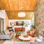 The owners of this 1959 artist-built home describe it as having “Brady Bunch” sensibilities, and we agree! The striking mid century fireplace is an eye-catcher and gives the space a one-with-nature feel. It’s two-sided too, so it can be viewed from either angle. Learn more about this Mid Century home with a unique blending of vintage treasures and modern finds here!