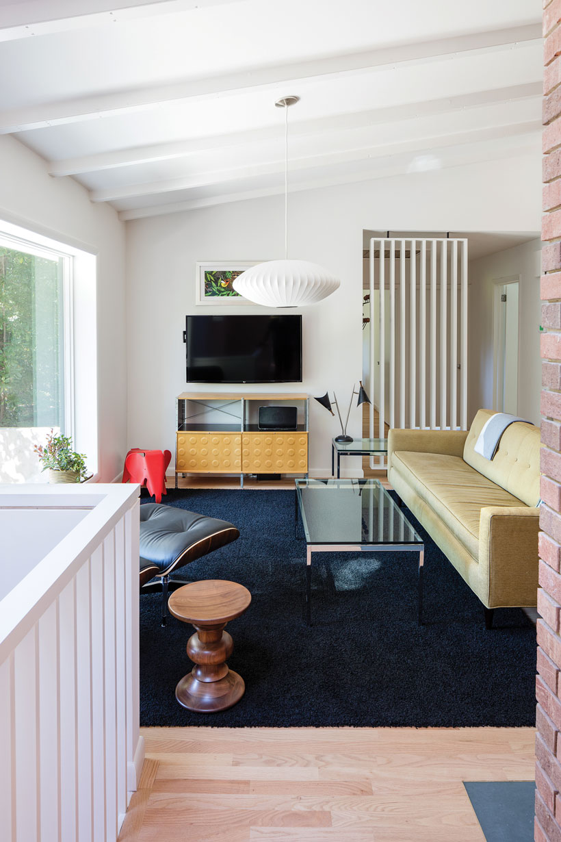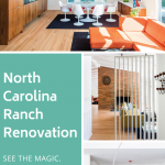 Blame it on the 1970s. Already in desperate need of a mid century renovation less than two decades after its construction, the classic low-sloped ranch house in Raleigh, North Carolina, had been made into a hodgepodge of stuffy rooms and random additions. Gold carpet and heavy floral curtains blanketed the main level, which was awkwardly divided into separated spaces, while the basement was a maze of dark and cloistered bedrooms.