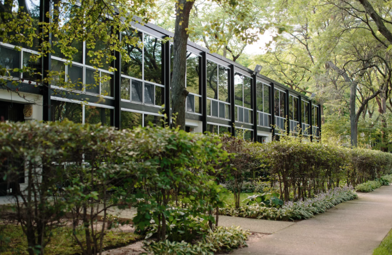 While at the Institute, Mies was tasked with expanding its campus and its growth from 7 to 120 acres. One of the buildings he designed for the Institute was the famous S.R. Crown Hall, a stunning 120 x 200 x 18-ft glass and steel structure completed in 1956. It was later named a National Historic Landmark in 2001.