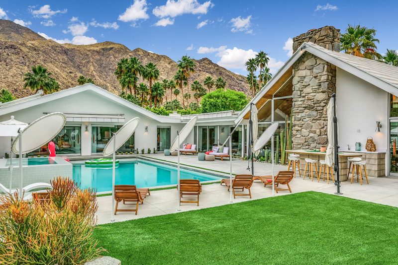 In 2018 Todd and Lezlie Wallin purchased this stunning Charles Du Bois home which had been updated in 2003 and fitted with that decade’s best interpretation of mid century style. But more than 10 years later, the Wallins were intent on revising the interior once again. This time they also tackled a modern outdoor design renovation, too. They aimed to restore a but more mid century spirit and entertaining fuction. To do so, they called upon designer, Lindsey Bennett, host and designer of HGTV’s Desert Flippers.