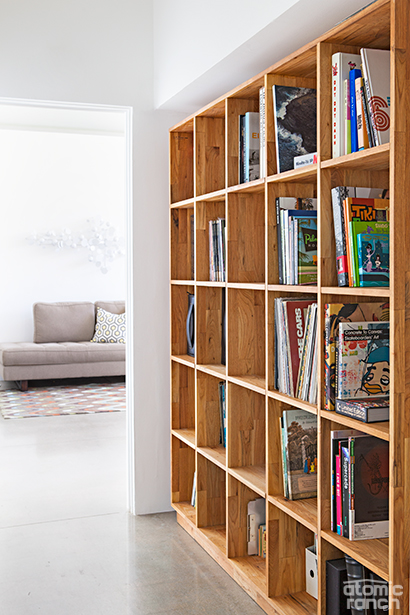 His search eventually led to a 1958 house with a butterfly roofline, nestled in the city’s historic Twin Palms neighborhood. Although awkwardly remodeled and more than a little run down, the Modernist house fit his vision, and he purchased the property in 2008. When his new bride Merah moved in the following year, Chris had already completed the structural renovations, much to her delight.