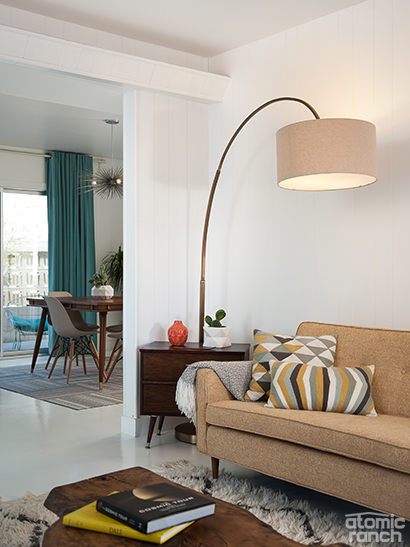 Rachel employed her design expertise to bring period-authentic colors to new material so that the home expresses a refreshed yet markedly mid mod feel. “I used a color palette inspired by color research I did in grad school—based on popular colors from 1964,” Rachel explains. “I also used tile sizes in the kitchen and bathroom that were the same as the original, and selected countertop materials that were new materials (quartz), but the same colors popular during the period.”