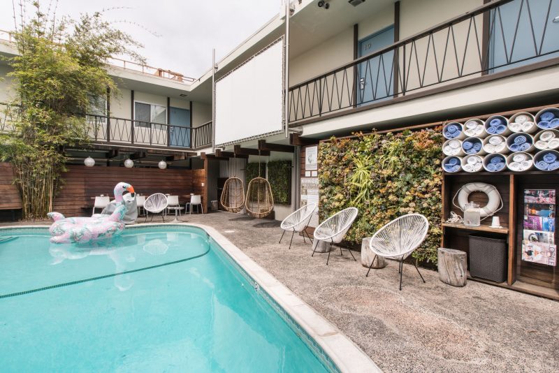Situated on Rosecrans Street in the Point Loma neighborhood of San Diego, The Pearl Hotel takes visitors back to Platt’s original architectural vision for the property thanks to the vintage-inspired interior decor. Key elements of the original property are still exhibited, such as their continuous and popular weekly Dive-In cinema series.