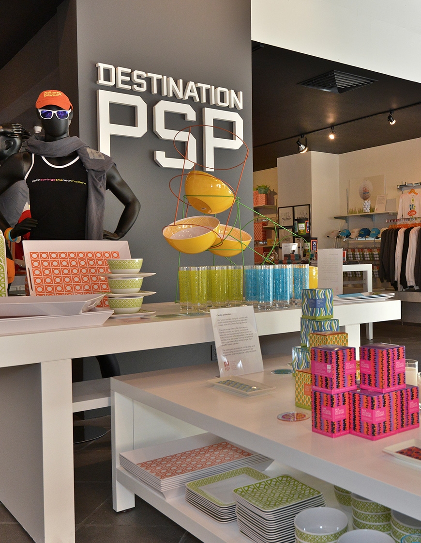 Named after the delightful open-air Palm Springs airport, Destination PSP offers unique, originally-designed products including mid-mod clothing, home décor, souvenirs, and more. Partnering with local businesses and charities, Destination PSP makes custom products for events like Modernism Week and the Palm Springs International Film Festival.