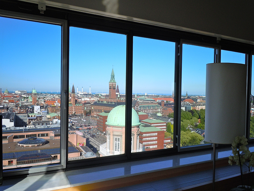 Commissioned by the Scandinavian Airlines System (the SAS for which the hotel was originally named), the hotel is actually connected to the airport. The hotel was designed to be a convenient and stylish getaway for tourists with the growing accessibility of transatlantic jet travel. Jacobsen designed the hotel from 1956-1960. The hotel has the distinction of being Copenhagen’s first skyscraper, although this was not necessarily a welcome addition at the time. The 20 stories-high concrete frame with gray green anodized glass was voted the ugliest building in Copenhagen. Love it or hate it, the hotel is an example of Arne Jacobsen’s design philosophy and the impetus for some of his most enduring chair designs.