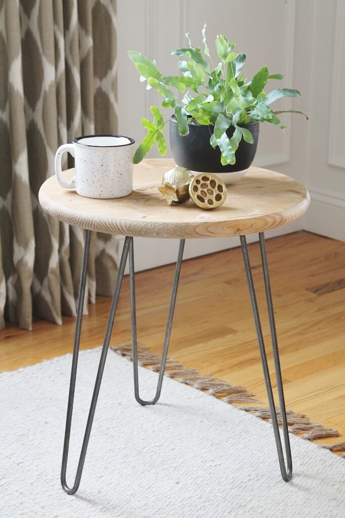 Hairpin legs are so classically midcentury, so as part of our Mid Century DIYs round up, we have an easy hairpin leg side table for you from City Farmhouse.