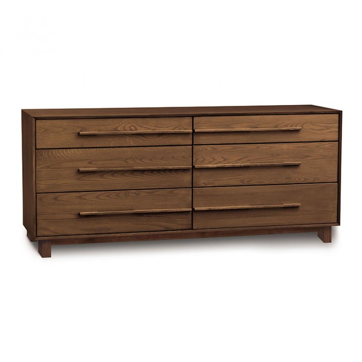 The rich walnut color of this Copeland design combined with the bold carved bar pull drawers makes this a striking choice. Sloane walnut dresser, $3,638.80.