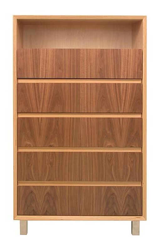 Modular and mixed with walnut and metal, this geometric dresser is utterly modern. Rule dresser, $2,899.
