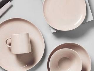 Who would have thought that “warm rose” would be the perfect color dish for Thanksgiving dinner? This soft hue will pop against a dark walnut or teak table.