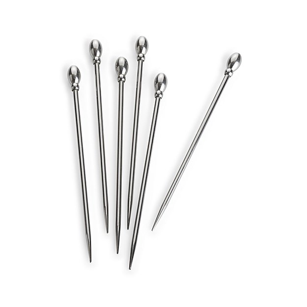 Silver cocktail picks will kick your home bartending skills up a few notches.