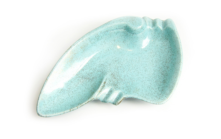 Organic, odd shapes were a trademark of the midcentury ashtray. And this aqua and gold-flecked piece from California Originals pottery is both indicative of the era yet totally timeless.