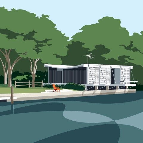 If you are not yet familiar with the name John Pirman, now is the time to take note! The artist and graphic designer specializes in translating the bold, graphic simplicity of MCM architecture to a bold, graphic simplicity in 2-dimensional artwork. You might have already come across his illustrations in Forbes, Vogue, The New York Times or The Wall Street Journal, and his art is regularly featured in publications local to his Sarasota, Florida home.