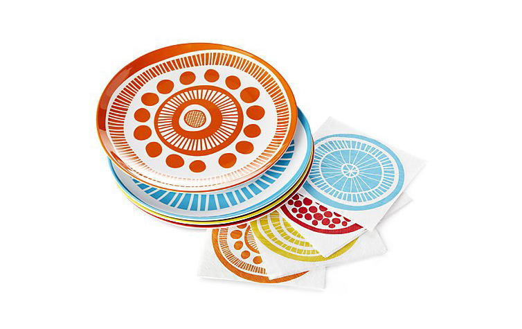 Colorful, graphic and delightfully durable, these Medallion Melamine plates are a bright spot on your patio table.