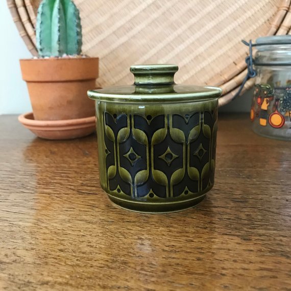 English Midcentury Modern Hornsea Pottery Jam Preserves Pot with Lid, $11.00.