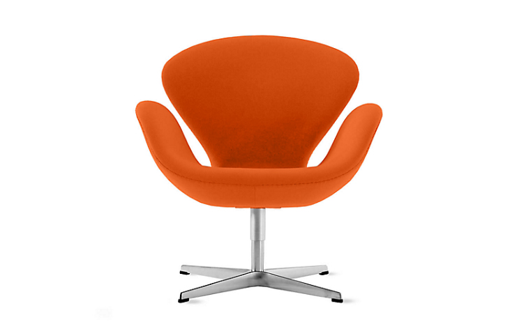 It is possible to make Arne Jacobsen’s Swan Chair any hotter than it already is? Add some atomic orange and yes, yes it is.